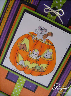 For today's Blog Hop I want to share with you a super spooky yet cute Jack-o'-LantErn and MicE image, this image is from M&M DEsignz and it is called MicE N Pumpkin. For this card I did SCS's Limited Supplies Challenge #238 and SCS Sketch Challenge #246.